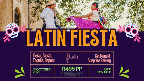 Early Bird ticket - Latin Fiesta evening with surprise pairing (4 course) ticket PER PERSON (50 avail) - R480.00