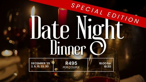 COUPLE ticket (2 pax) Adult dinner date night (excl 15% service fee) (maximum of 8 guest per booking) (39 avail) - R495.00