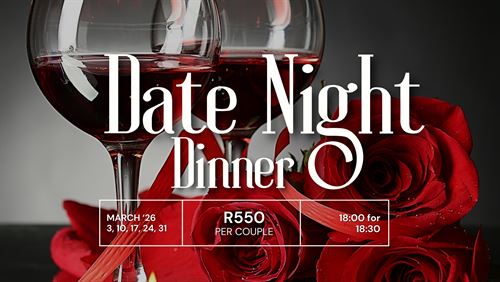 COUPLE ticket (2 pax) Adult dinner date night (excl 15% service fee) (maximum of 8 guest per booking) (40 avail) - R550.00